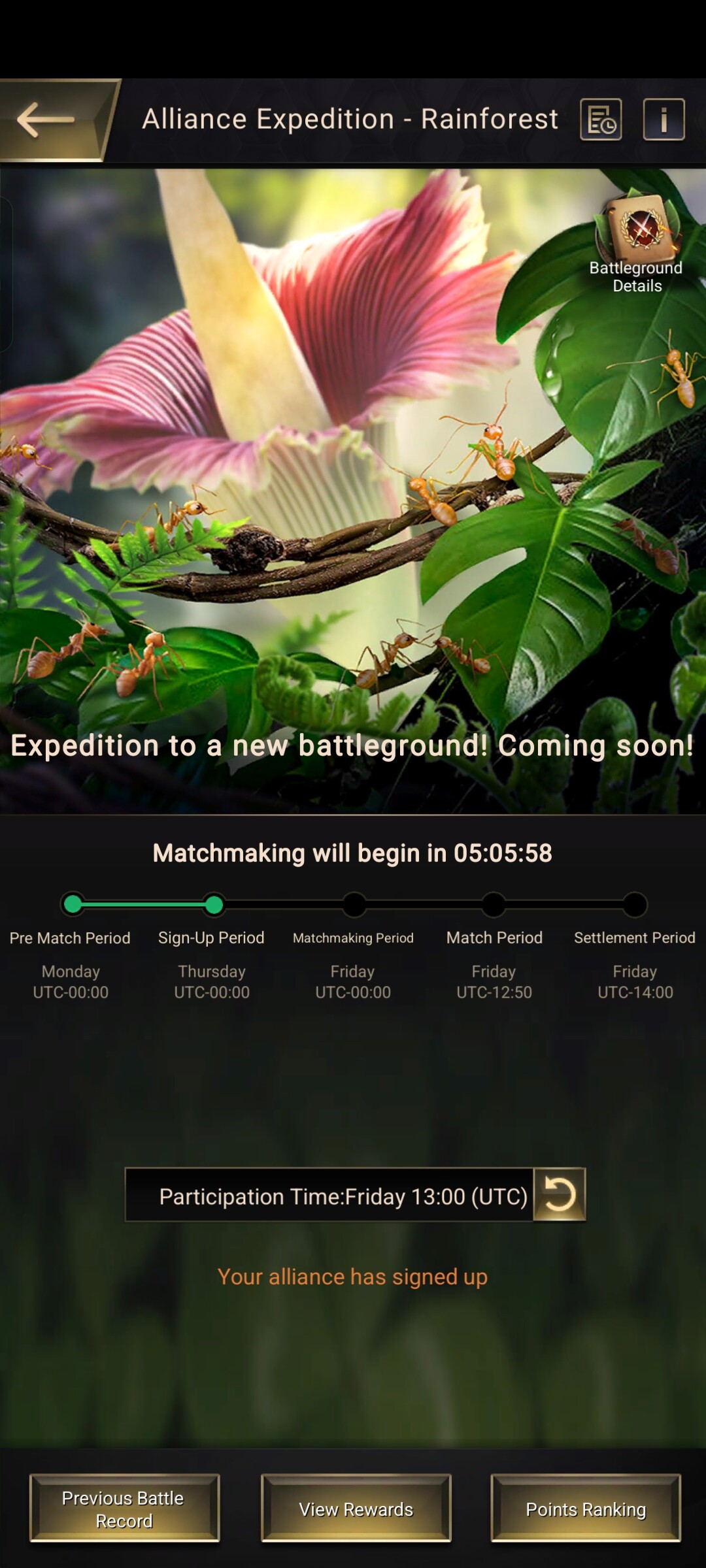 Help your alliance conquer Rainforest or just enjoy a weekly change of air!