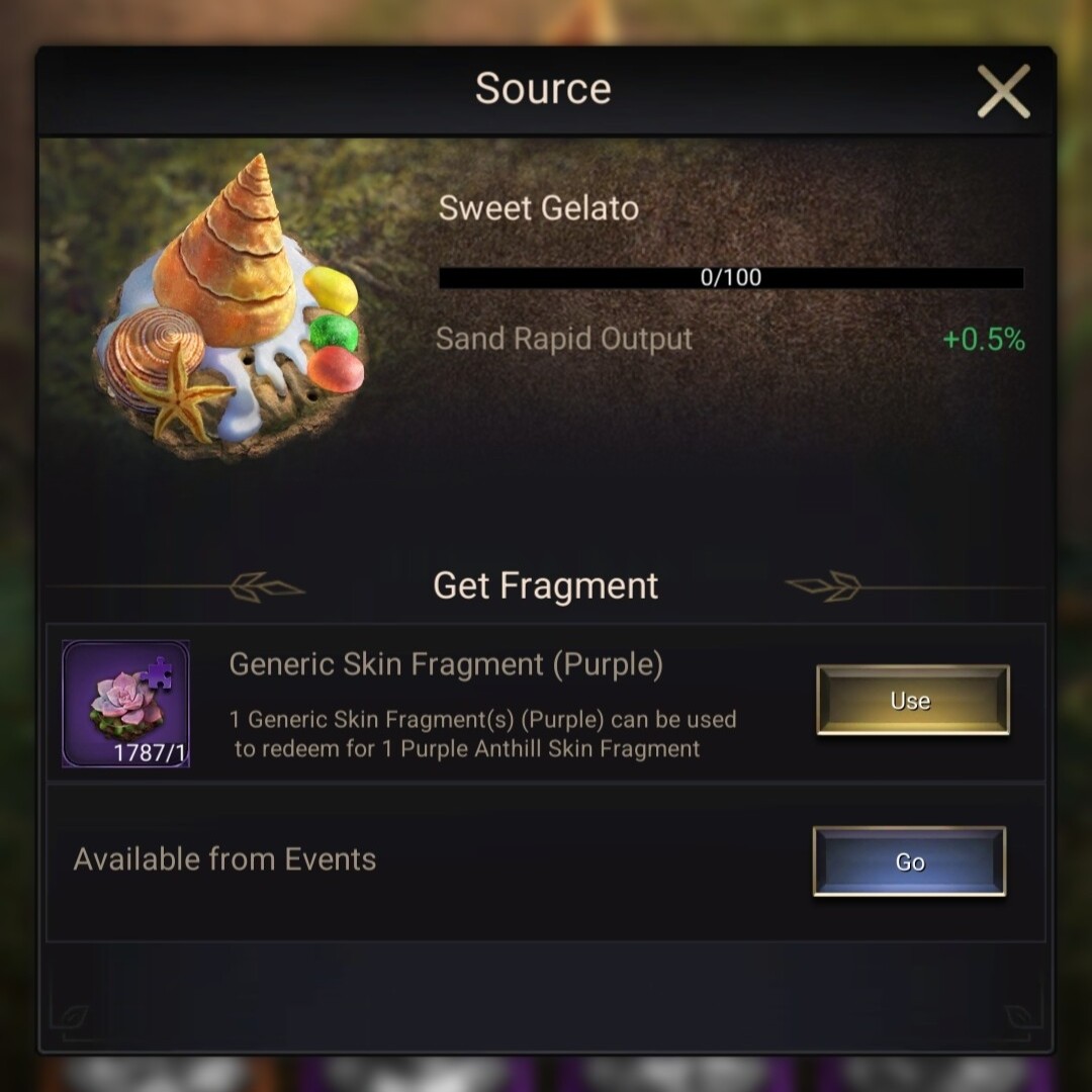 By doing the levels on [Force Of…] events, you earn purple anthill fragments that you will use later to redeem purple anthill skins.